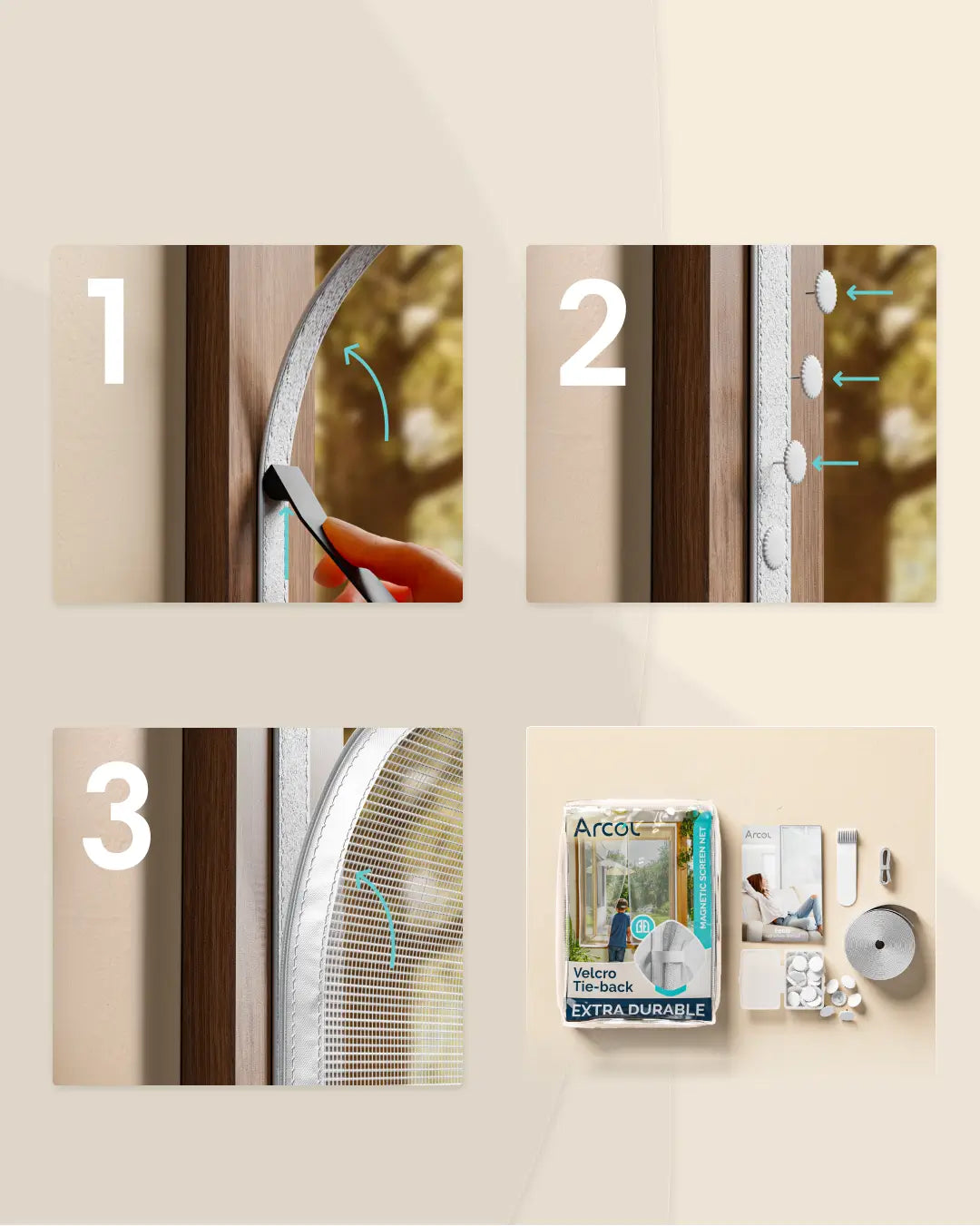 Potenti magneti corrono verticalmente lungo la cucitura centrale. Quando si attraversa, la rete si separa facilmente, poi i magneti ricompongono automaticamente le due metà, creando una chiusura istantanea senza bisogno di chiuderla manualmente.