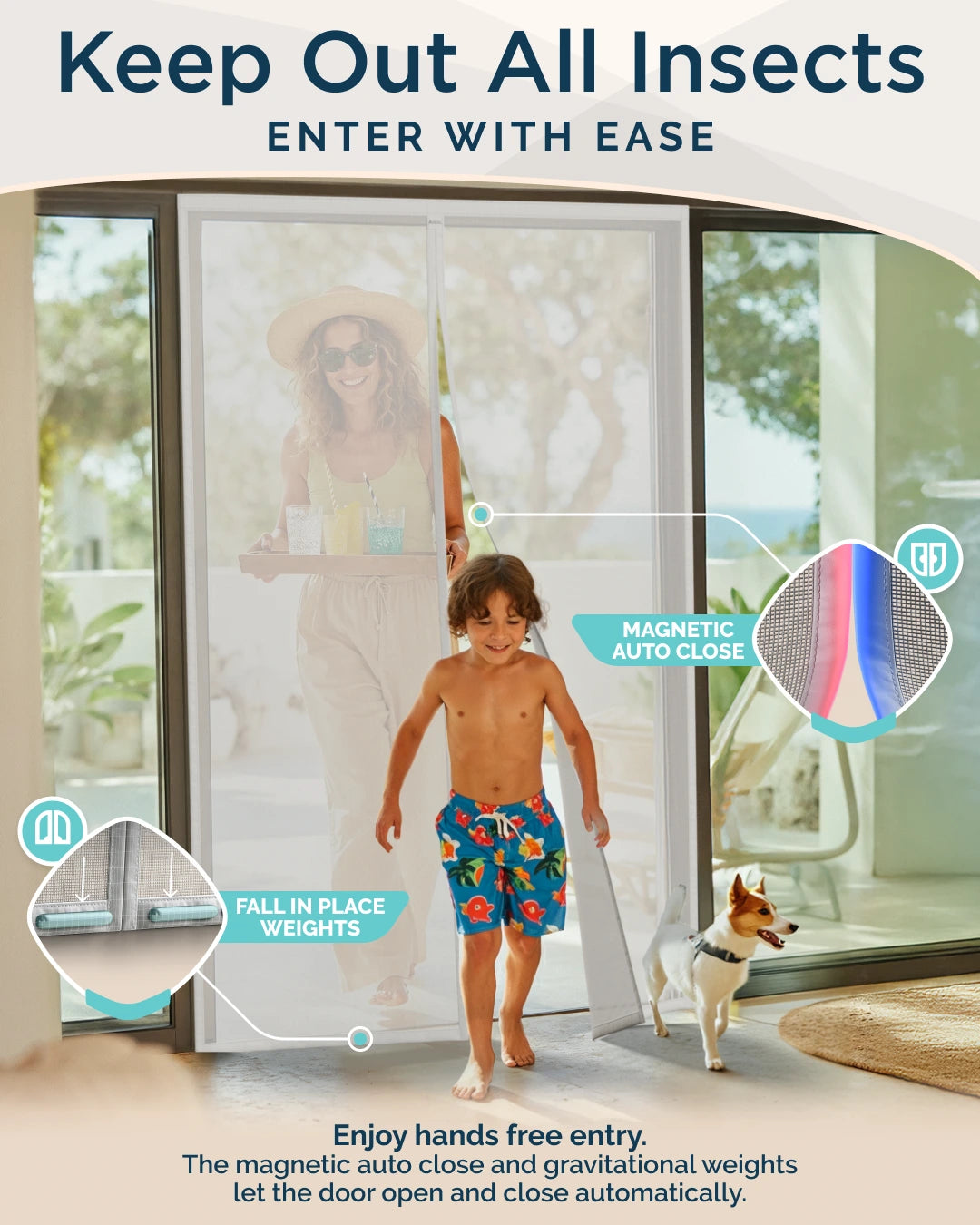 Yes, magnetic screen doors effectively keep insects out whilst allowing easy passage. The magnetic strips create a reliable seal that automatically closes behind you, preventing flies and mosquitoes from entering your home.