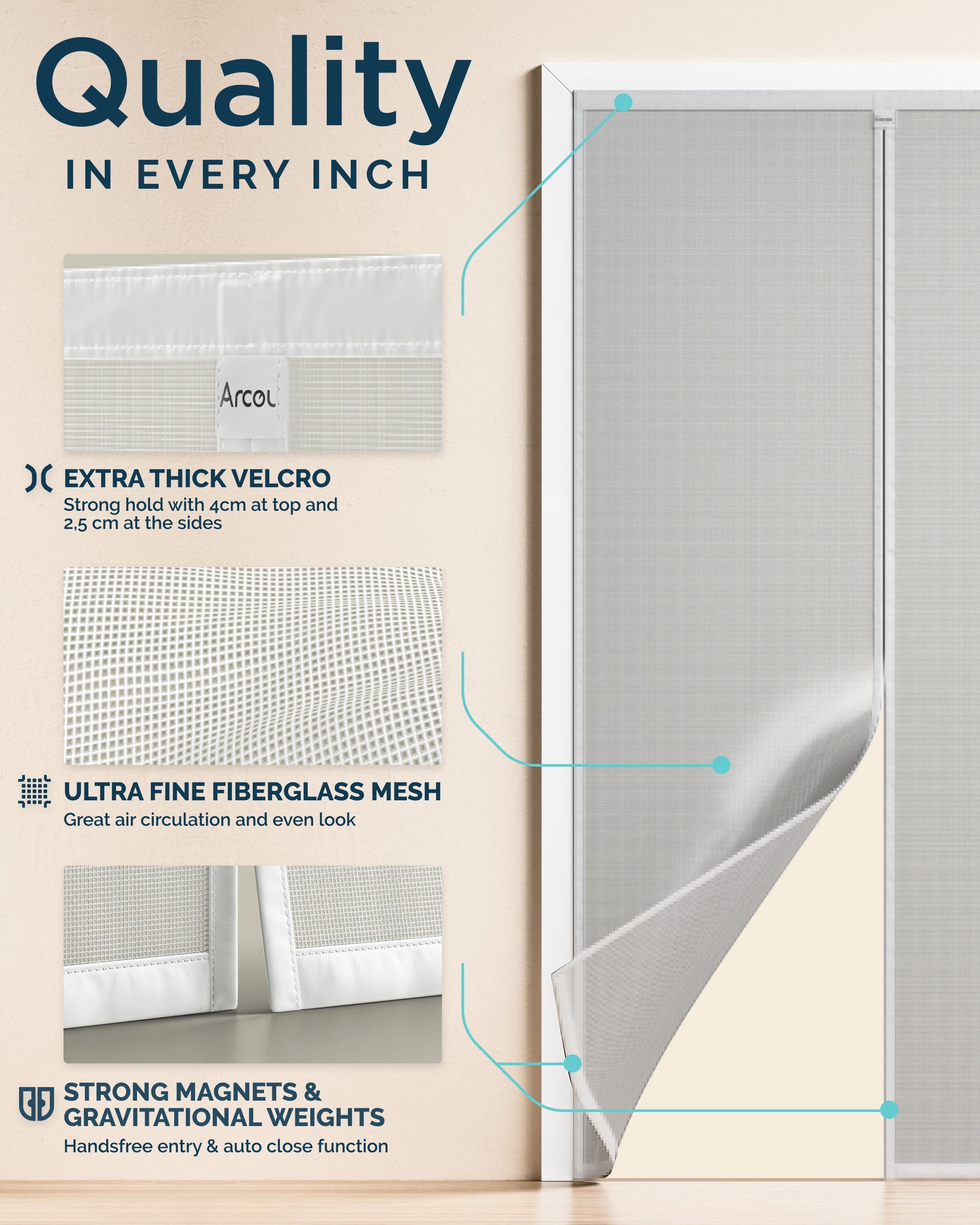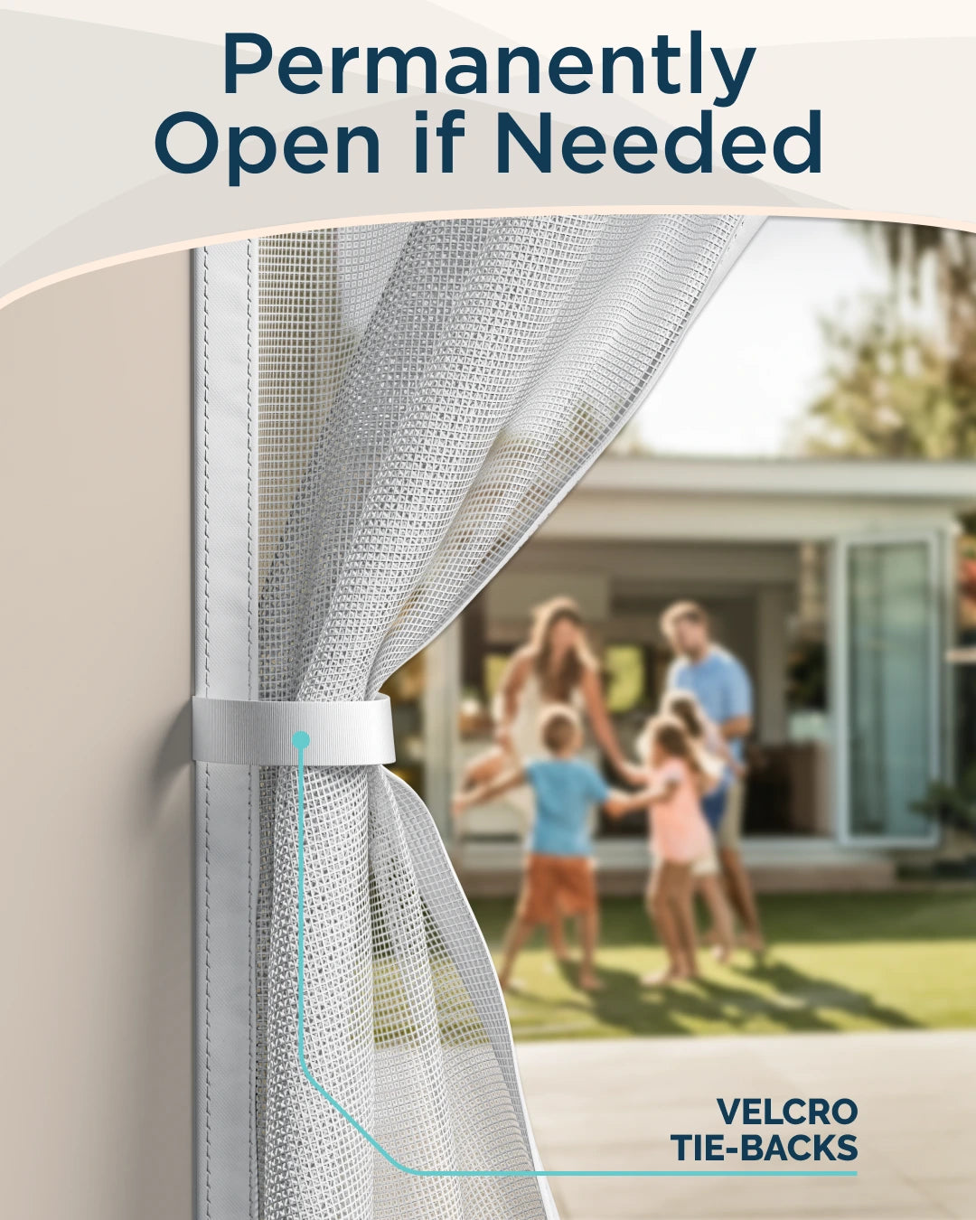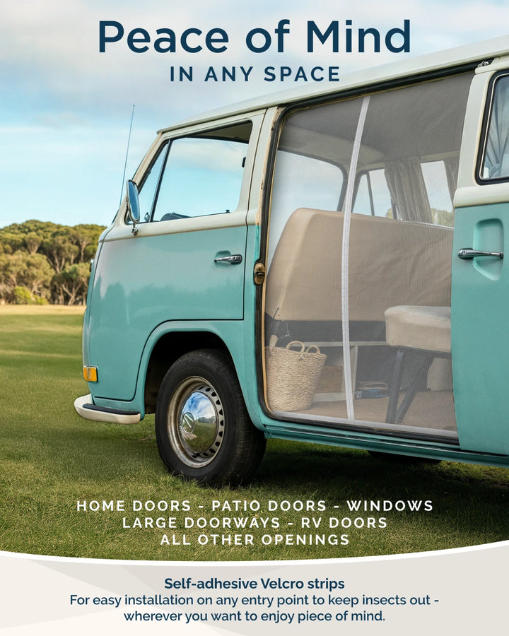 Powerful magnets run vertically down the centre seam. When you walk through, the mesh parts easily, then the magnets automatically pull the two halves back together, creating an instant seal without manual closing.
