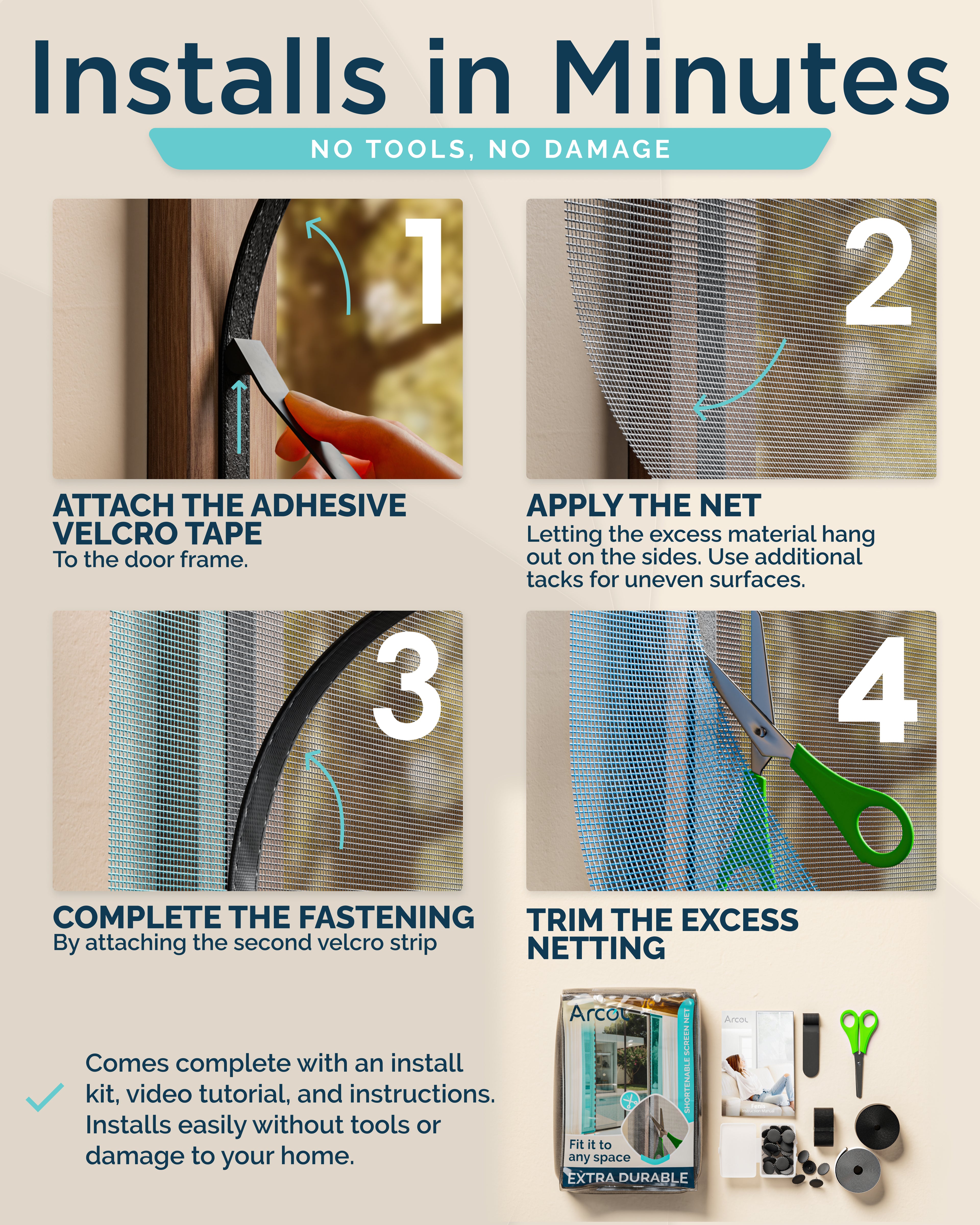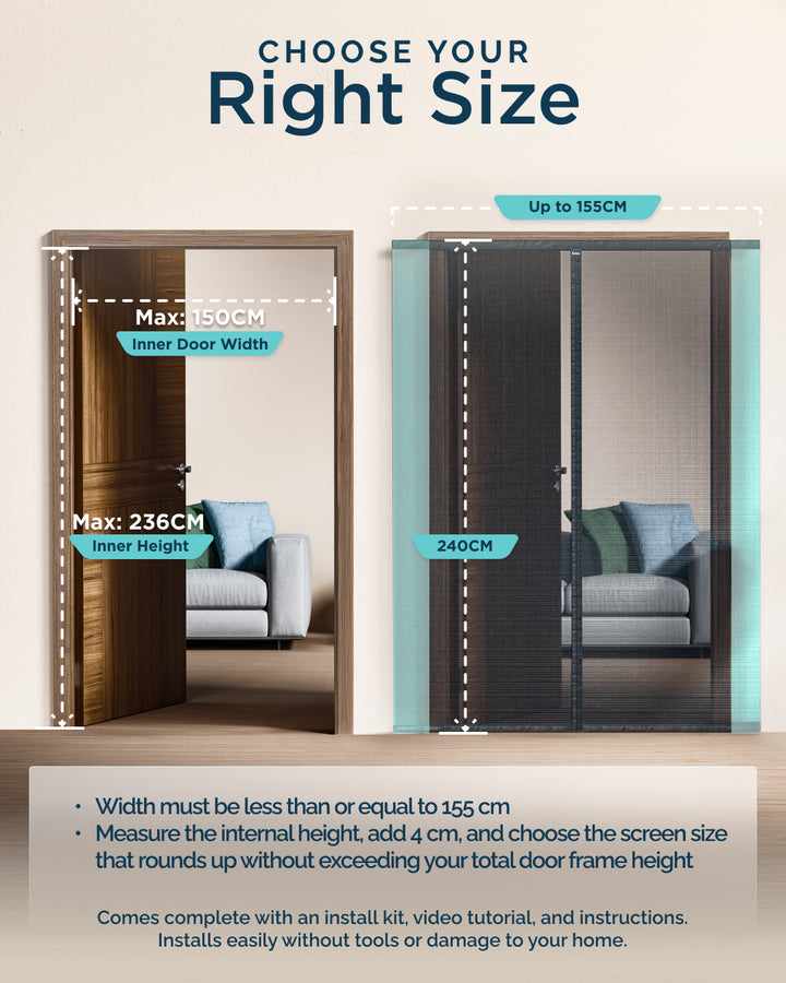 Just a tape measure and household scissors. No special cutting tools required. The reinforced polyester mesh cuts cleanly without fraying, making DIY customisation simple for anyone.